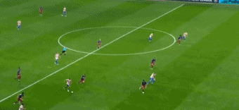第31分钟,格列兹曼精准直传,马科斯-略伦特右路插上传中,卢克曼轻松推射得手,马竞扳回一城,1-2!